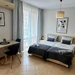 寝室1室のRoyal Sun Premium Apartment サニービーチは、アミューズメントパーク・サニービーチ・セントラルから1.7km離れた所に位置し、プールを提供しています。 40m²のアパートには都市の景色に面したテラスがあります。